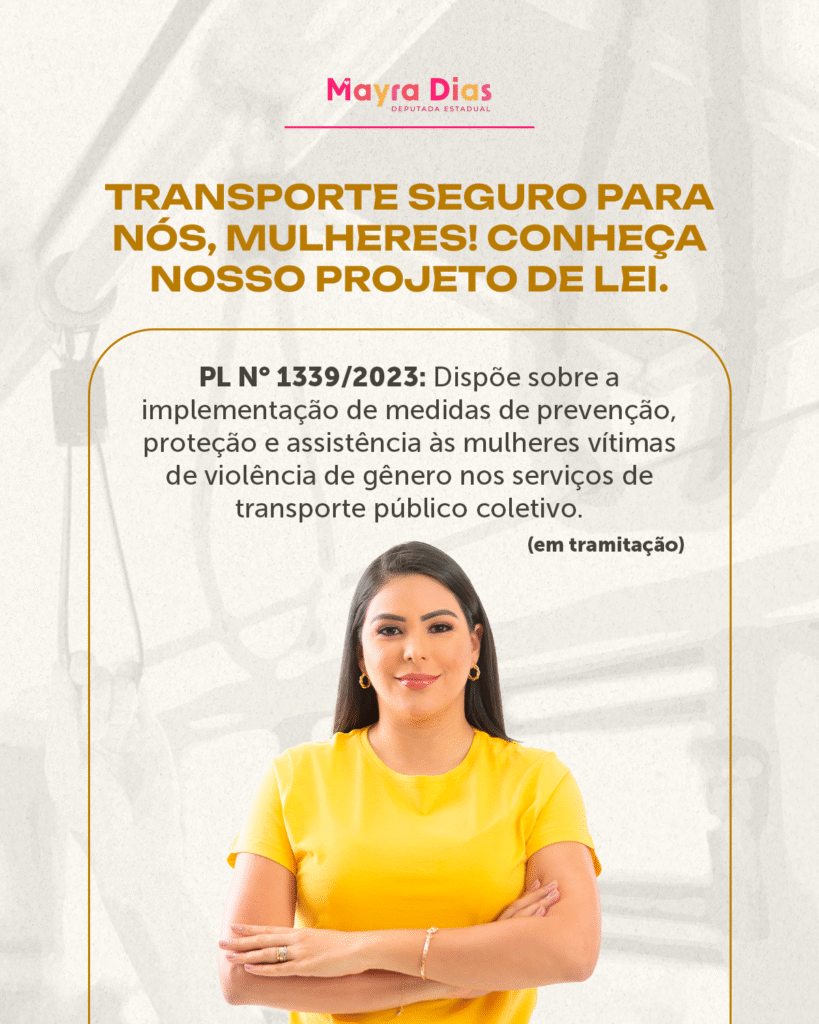 Dispõe sobre a implementação de medidas de prevenção, proteção e assistência às mulheres vítimas de violência de gênero nos serviços de transporte público coletivo. As medidas de proteção incluem (mas não se limitam) a: